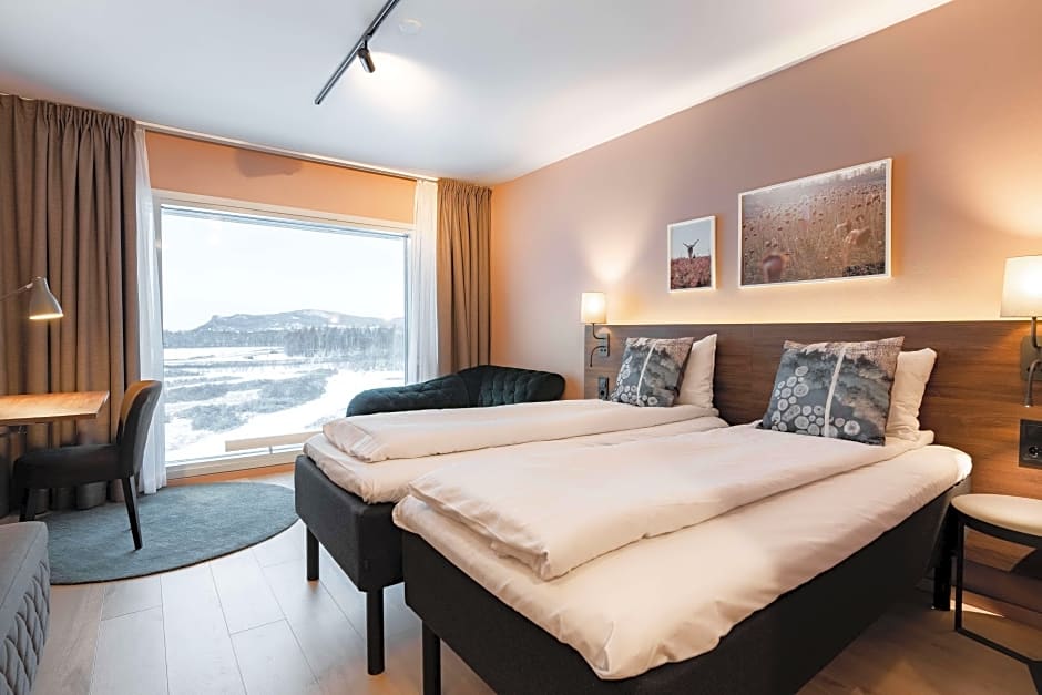 A seating area with a flat-screen TV, a desk and a private bathroom are featured in this twin room. The unit offers 2 beds.